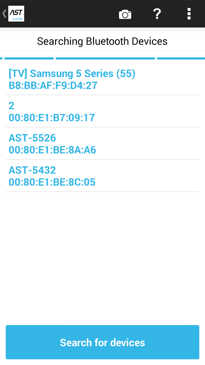 This screen lists all available AST mini drivers within the range of your phone. The range of an AST mini driver in open space is about 20 m. The search time for drivers can take up to 60 seconds, but of course, when the desired driver appears in the list, you can select this item and go to work with the driver.
