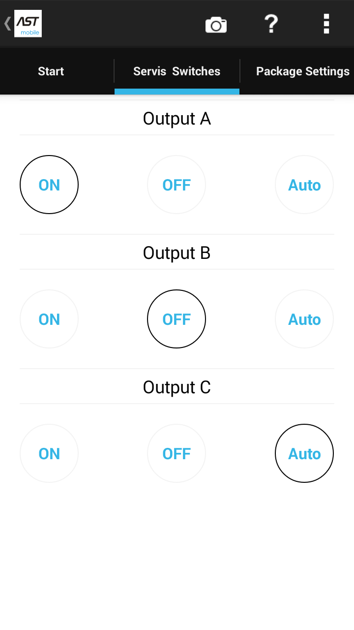 (The switching table can be defined and then sent to the controller by means of the ASTmobile application)